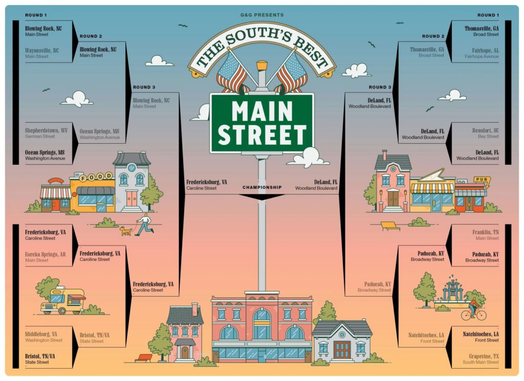 The City of DeLand has advanced to the championship round of Garden & Gun magazine’s “Best Main Street in the South” bracket competition, placing Woodland Boulevard among the last contenders