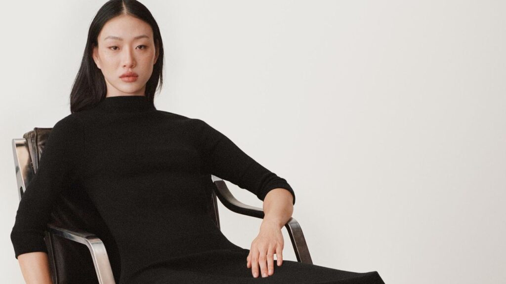 From left to right: Matteo Silk Dress, Cashmere Cardigan, Meandher Lulu Oxfords