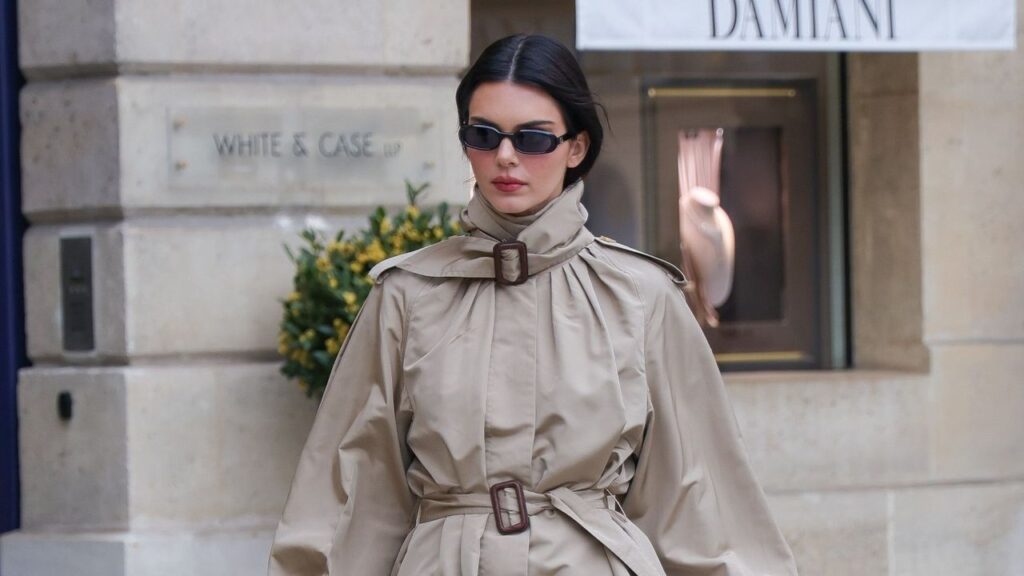 The model stepped out in the City of Light in a perfect statement coat.