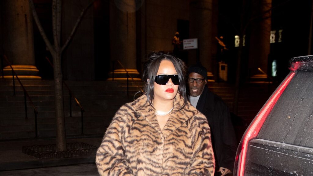 Letting go of her penchant for python for the evening, Rihanna swathed herself in tiger stripes for a night out in New York.