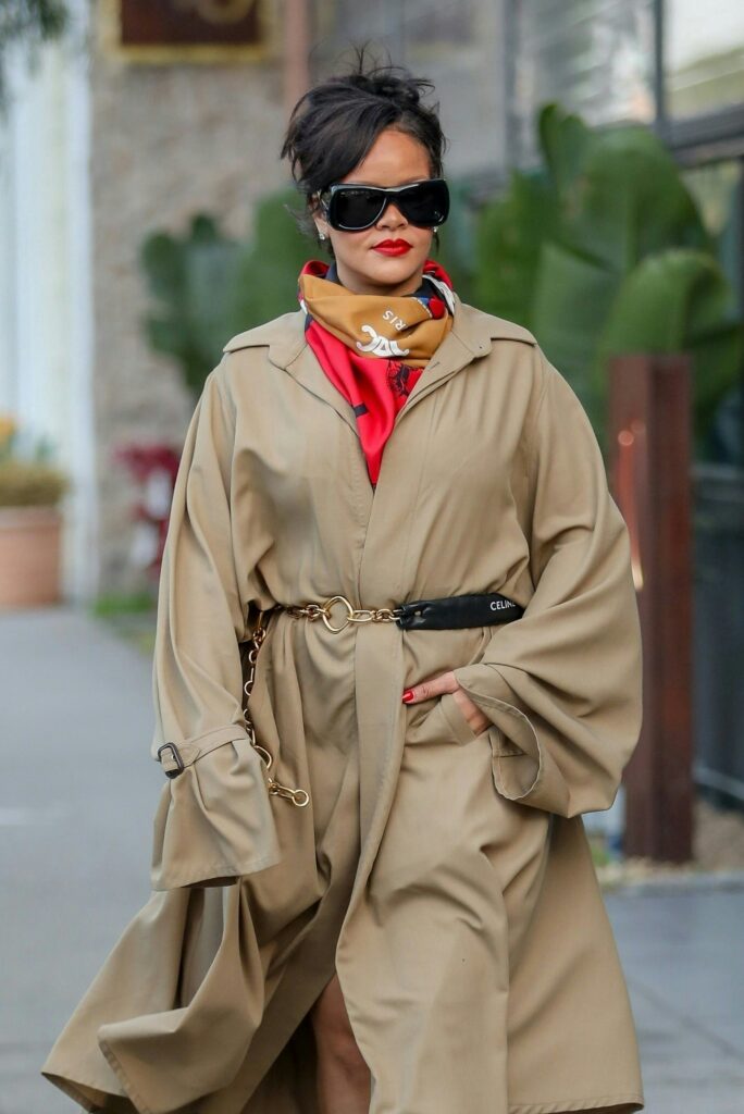 Out in Los Angeles, the mogul wore an oversized fall trench with no pants underneath.