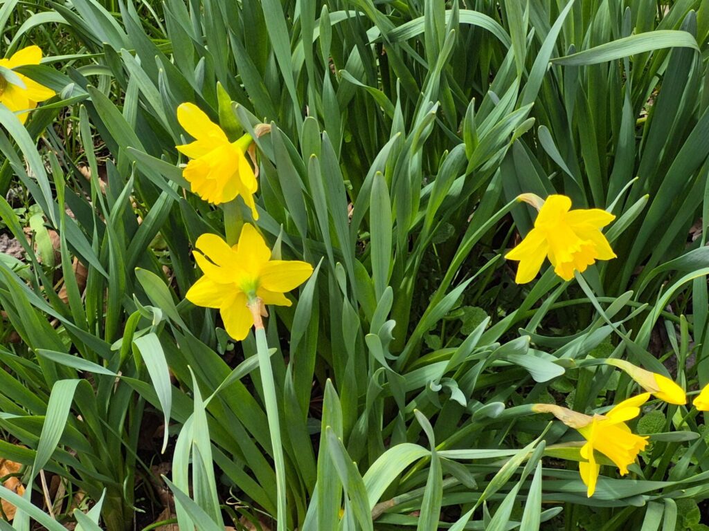 Looking out my kitchen window, my backyard is awash in daffodils. I am not sure how many patches were here when I bought my old house, but I know I