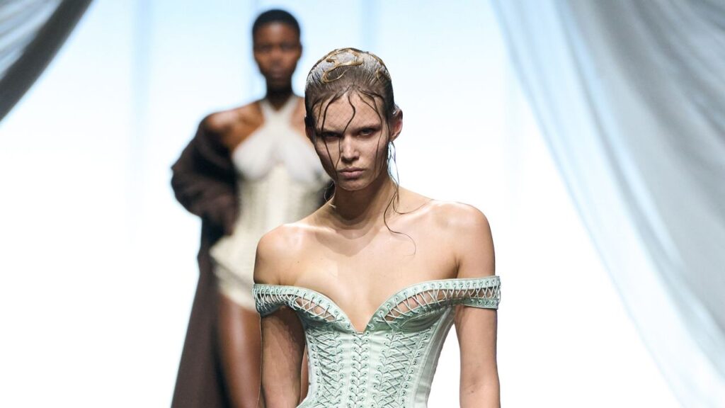 Look one from Ludovic de Saint Sernin’s one-off Jean Paul Gaultier outing nabbed the top spot of Vogue Runway’s most-saved images list.